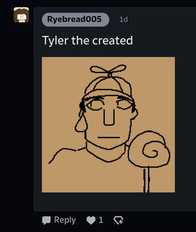 This artist's reqs were open and I asked them to draw Tyler and they were very kind to draw a very silly tyler, this was my very first time requesting someone btw...